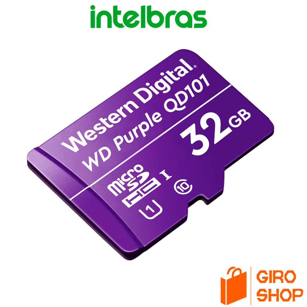 1x Cartão de Memória Micro‑SD Intelbras 32 GB WD Purple (classificado como Classe 10)
